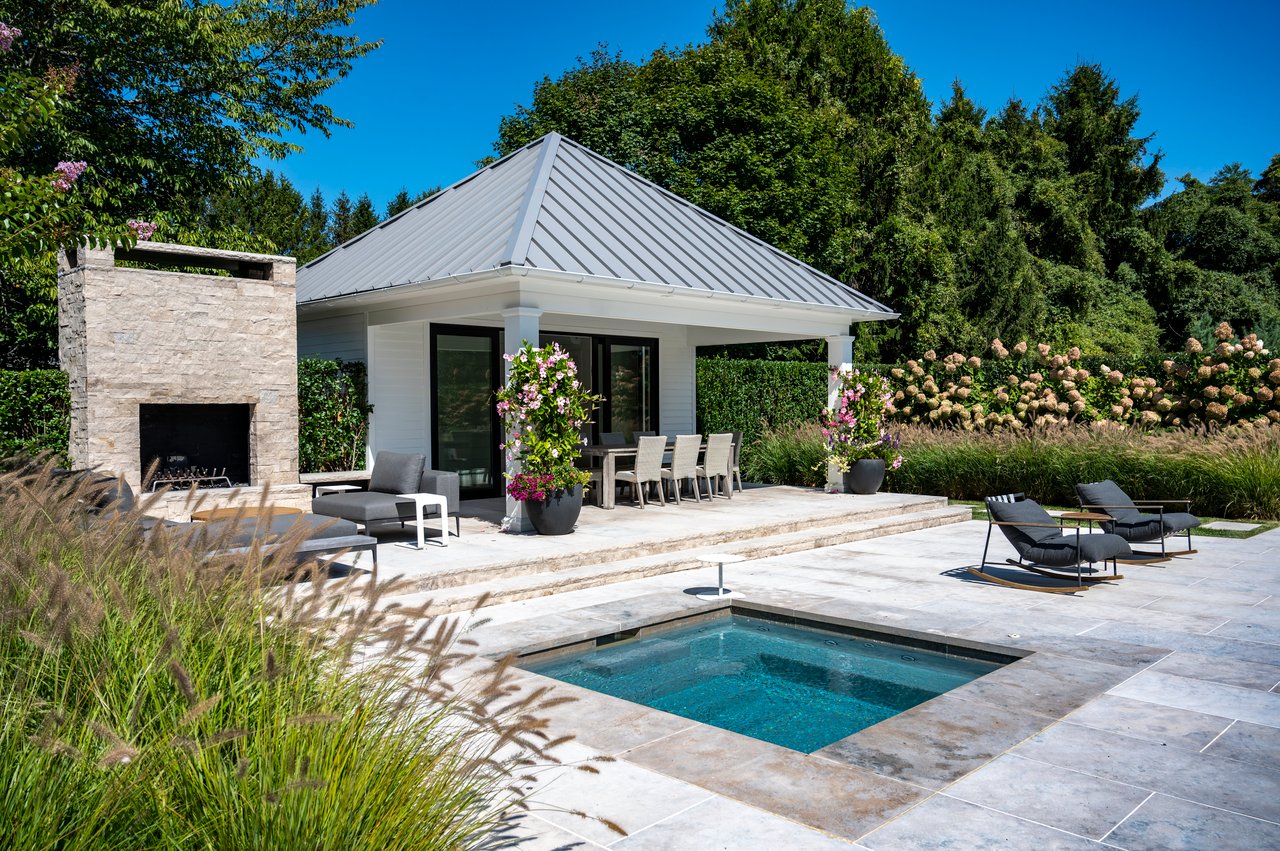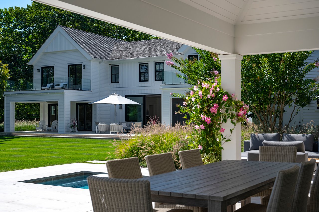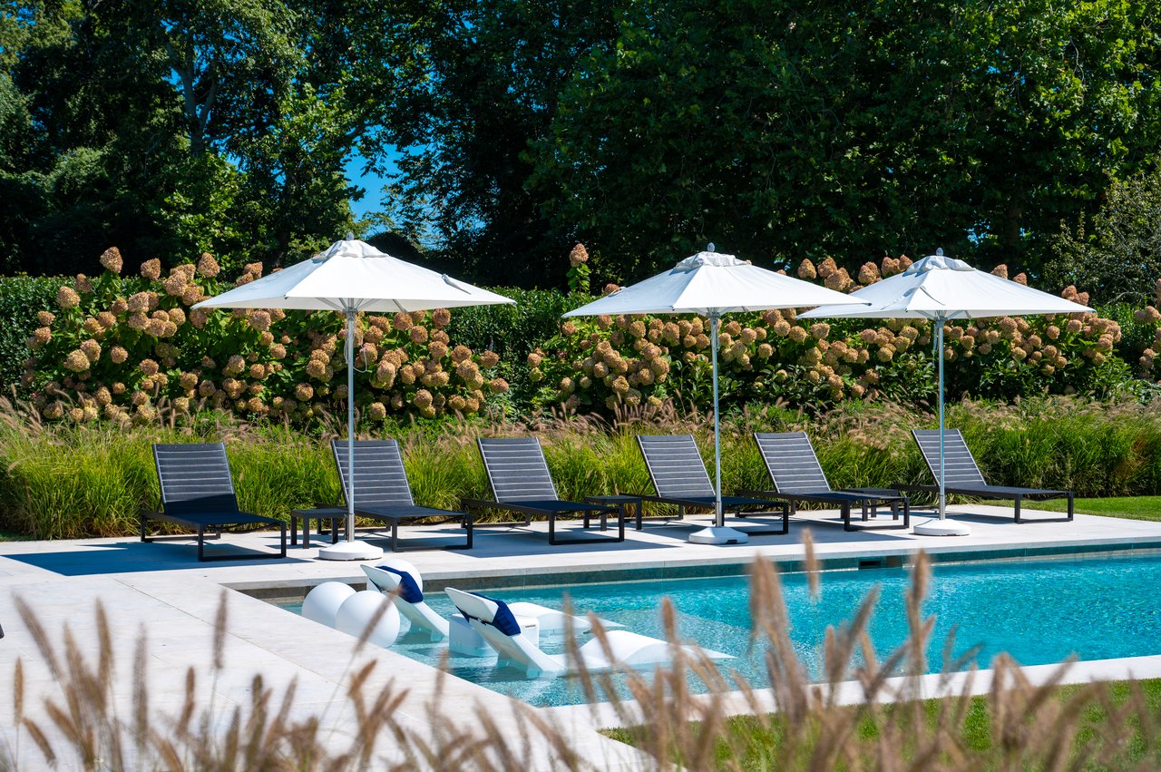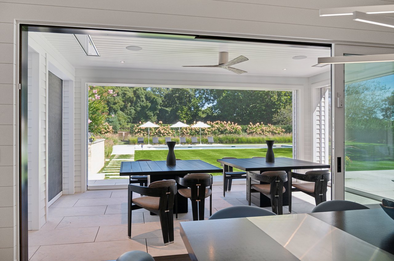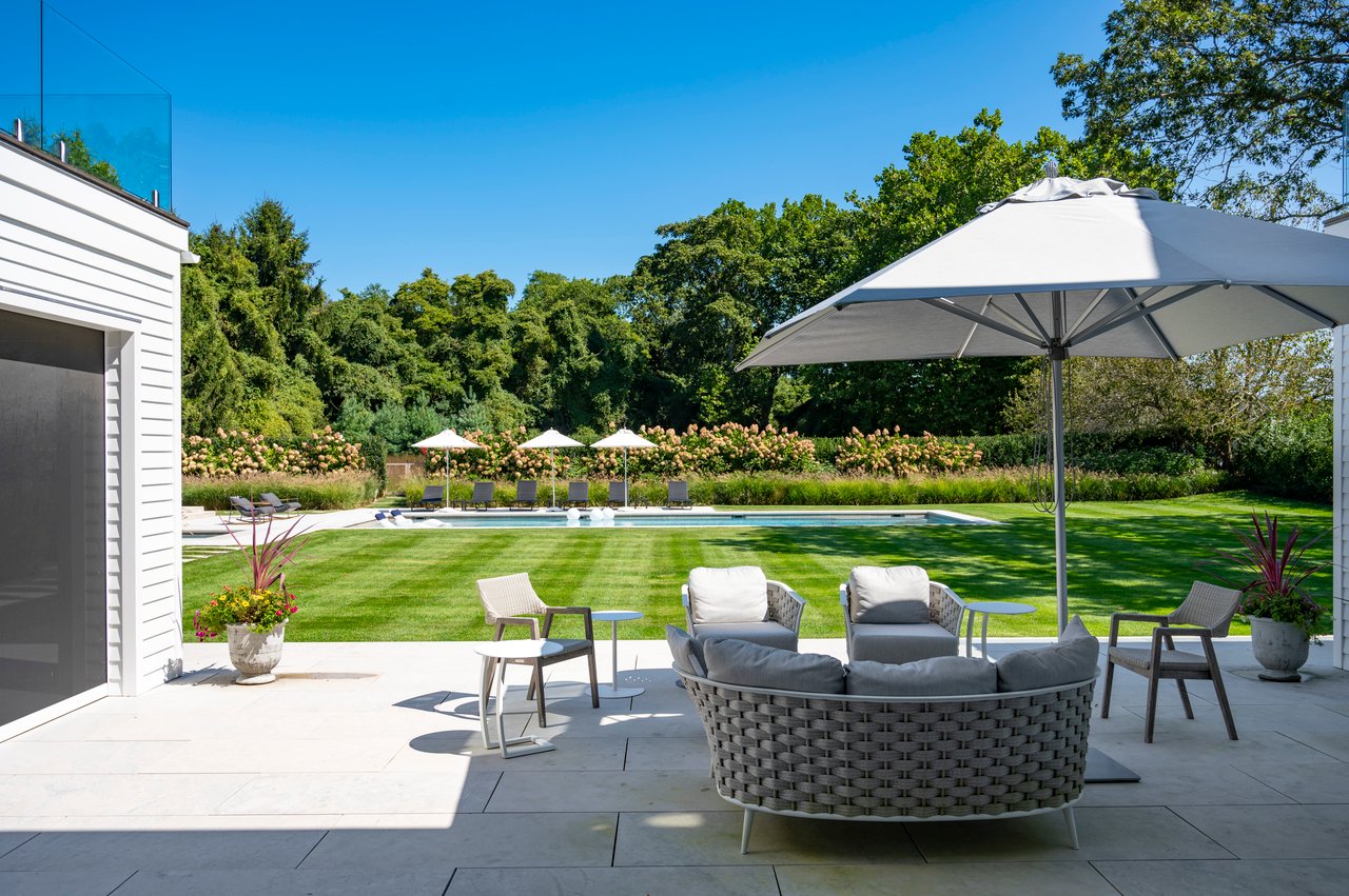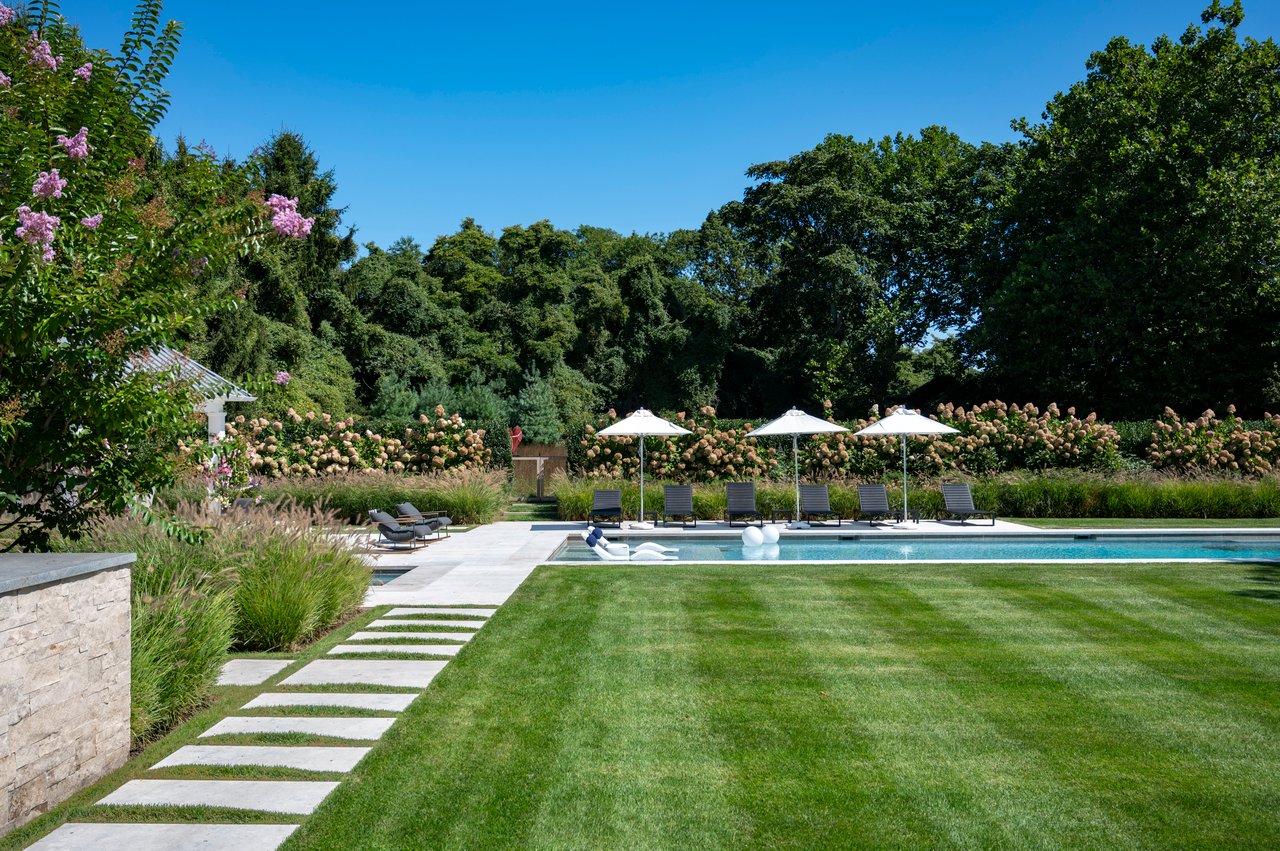 Set on almost two acres and bordered by a horse farm, this extraordinary 8,670± SF estate on Town Line Road blends timeless architecture with modern luxury. Stunning landscape, created by the renowned firm, Laguardia Design Group, emphasizes privacy and tranquility, the property is located just 1.5± miles from the Atlantic Ocean. Custom-built to the highest standards utilizing hard wood floors and custom millwork throughout, the residence offers 8 bedrooms, 8 full baths, and 2 half baths. The dramatic great room features soaring vaulted ceilings and a double-sided fireplace shared with an elegant dining room. The living room has floor-to-ceiling sliding glass doors that open to the outside patio promoting resort-style outdoor living, while a screened porch opens to the kitchen with automated screens provides a seamless indoor-outdoor experience. The spacious open kitchen has top of the line Sub-zero/ Wolf/ Miele appliances, with a large 12 foot center island, counter seating, and a great flow to the living room and family room, is designed for effortless entertaining. Both the second floor primary suite and the first-floor guest suite offers a serene retreat, featuring a spa-like experience with an oversized shower with tile throughout and natural stone flooring, a freestanding tub, and ample walk-in closets. The lower level is dedicated to wellness and leisure, including a gym, an marble steam room, dry sauna, rec room, 2 bedrooms, one of which is a bunk room and generous storage space. Additional amenities include a three-car garage with direct access to the house. Outdoor amenities include a 18' x 54' heated gunite pool with a Baja sunshelf and a 10 person hot tub, complemented by a well appointed pool house with kitchenette and bathroom, limestone patios, and an outdoor fireplace-ideal for summer gatherings. The property has room for a padel court. The home's fully integrated automation systems provide controls for all aspects of the house including front gates, music in and outside, solar panel array and backup generator for total entertainment, sustainability and security. [[Rental Registration # Pending]]
