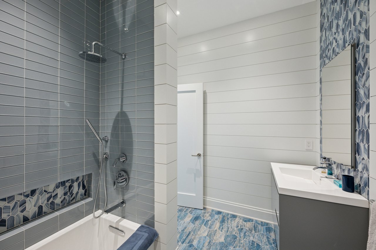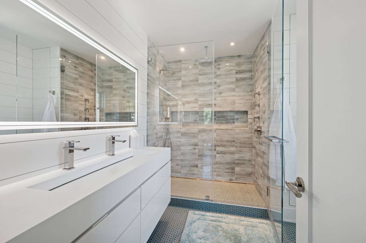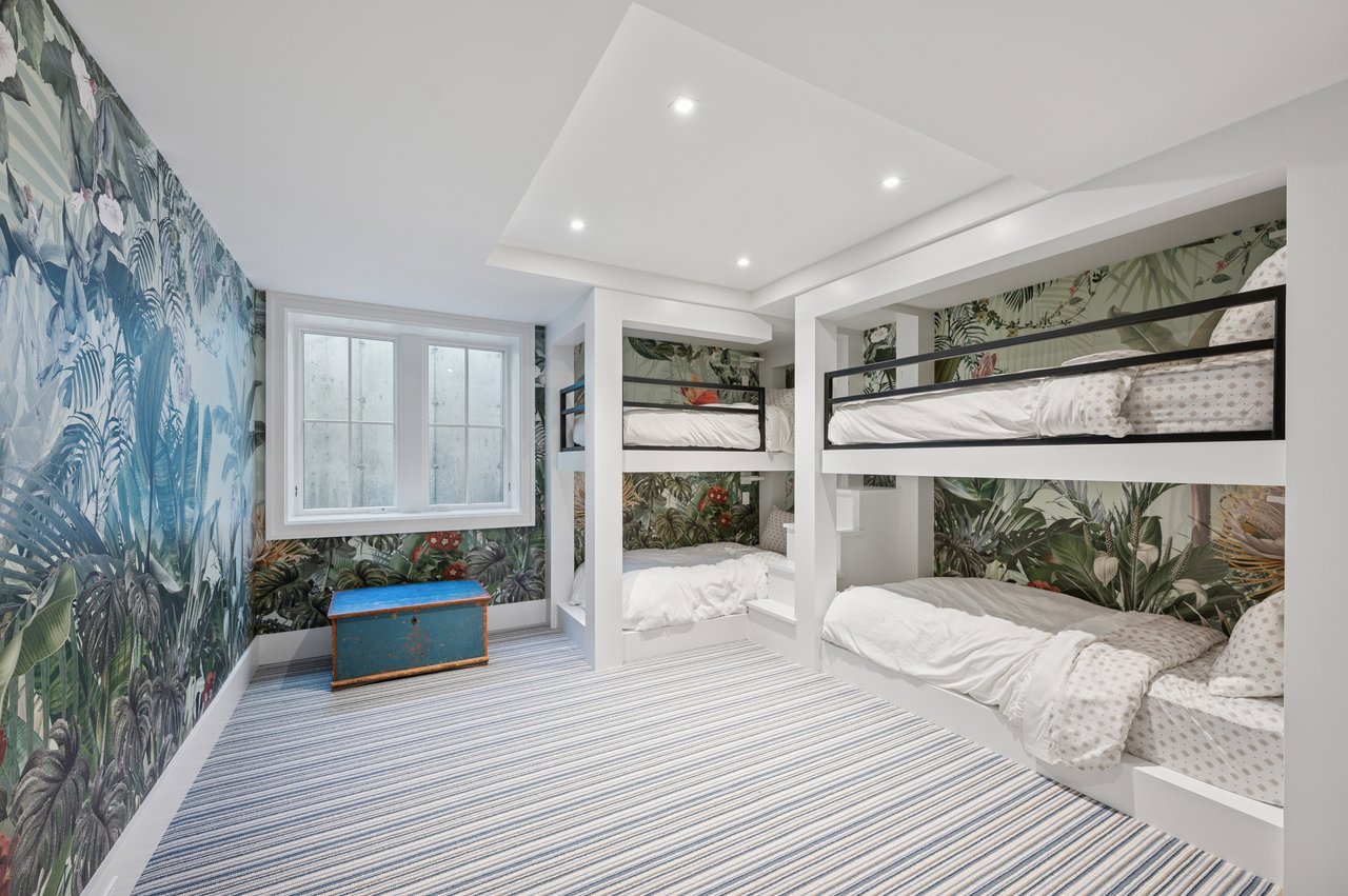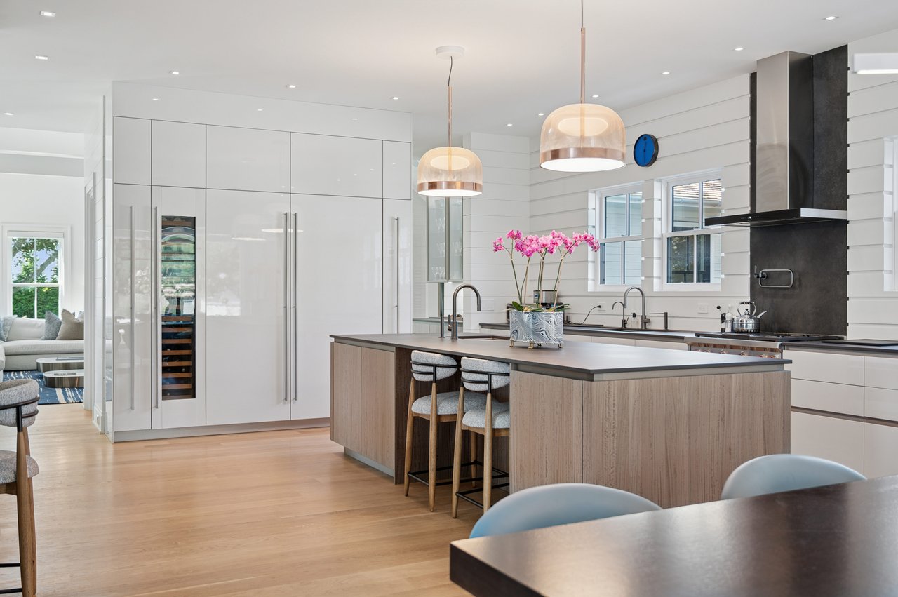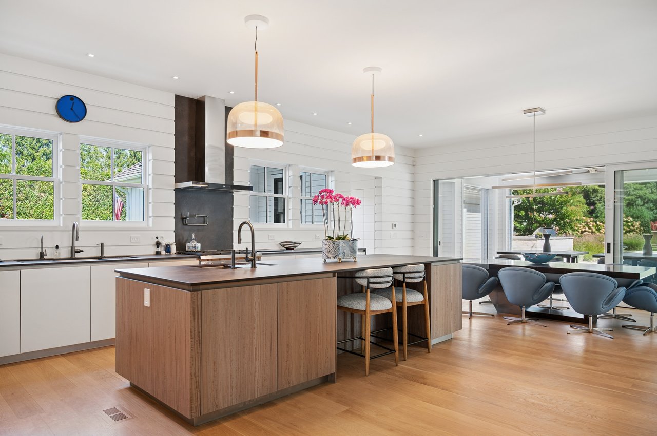 Set on almost two acres and bordered by a horse farm, this extraordinary 8,670± SF estate on Town Line Road blends timeless architecture with modern luxury. Stunning landscape, created by the renowned firm, Laguardia Design Group, emphasizes privacy and tranquility, the property is located just 1.5± miles from the Atlantic Ocean. Custom-built to the highest standards utilizing hard wood floors and custom millwork throughout, the residence offers 8 bedrooms, 8 full baths, and 2 half baths. The dramatic great room features soaring vaulted ceilings and a double-sided fireplace shared with an elegant dining room. The living room has floor-to-ceiling sliding glass doors that open to the outside patio promoting resort-style outdoor living, while a screened porch opens to the kitchen with automated screens provides a seamless indoor-outdoor experience. The spacious open kitchen has top of the line Sub-zero/ Wolf/ Miele appliances, with a large 12 foot center island, counter seating, and a great flow to the living room and family room, is designed for effortless entertaining. Both the second floor primary suite and the first-floor guest suite offers a serene retreat, featuring a spa-like experience with an oversized shower with tile throughout and natural stone flooring, a freestanding tub, and ample walk-in closets. The lower level is dedicated to wellness and leisure, including a gym, an marble steam room, dry sauna, rec room, 2 bedrooms, one of which is a bunk room and generous storage space. Additional amenities include a three-car garage with direct access to the house. Outdoor amenities include a 18' x 54' heated gunite pool with a Baja sunshelf and a 10 person hot tub, complemented by a well appointed pool house with kitchenette and bathroom, limestone patios, and an outdoor fireplace-ideal for summer gatherings. The property has room for a padel court. The home's fully integrated automation systems provide controls for all aspects of the house including front gates, music in and outside, solar panel array and backup generator for total entertainment, sustainability and security. [[Rental Registration # Pending]]