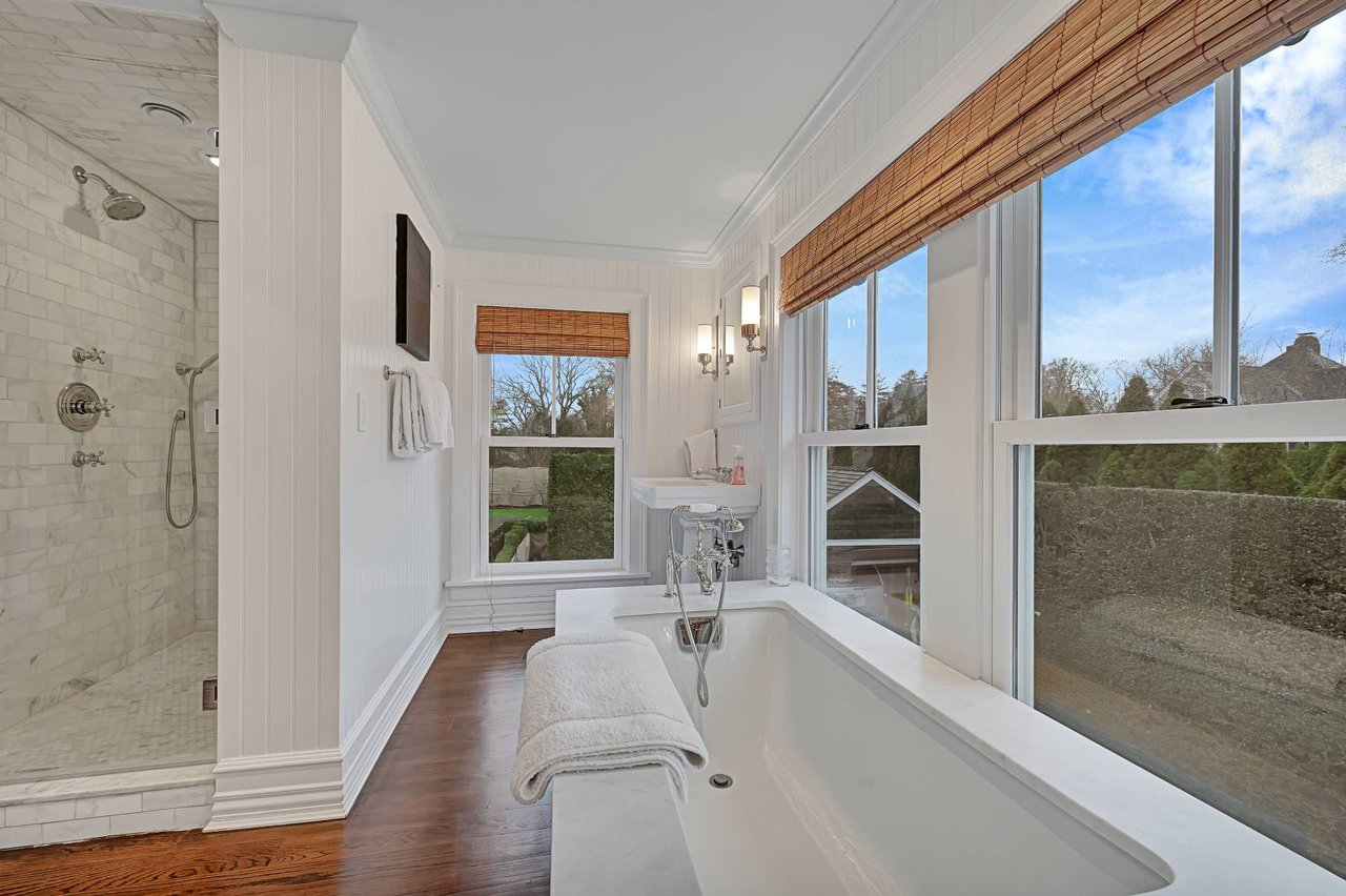Completely renovated 6 bedroom, 5 bath 4000 square ft. pristine home with gourmet kitchen and tons of entertaining space, 5 fireplaces and French doors leading out to beautiful grounds and heated gunite pool and poolhouse. Bliss right in the village, close to beach, shops and train. Fabulous rental.